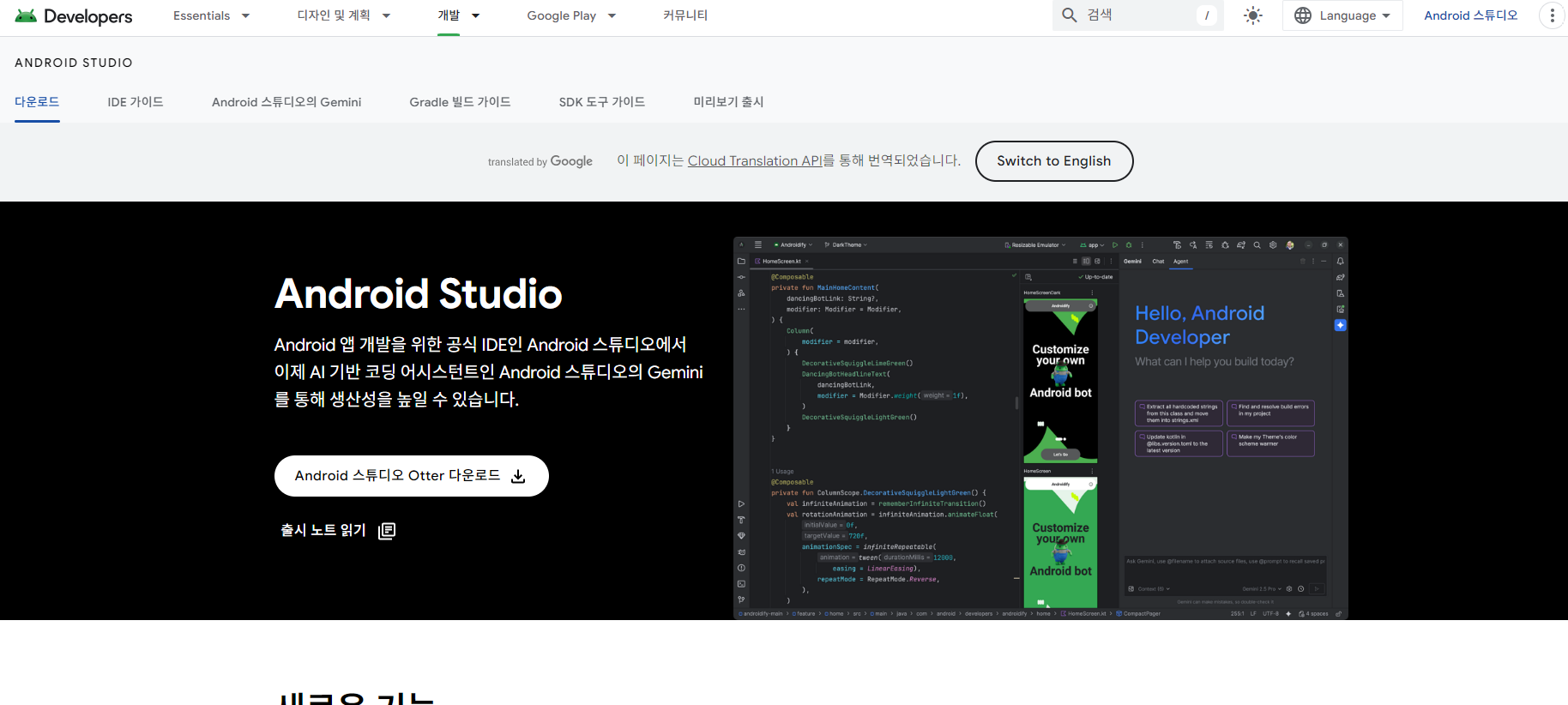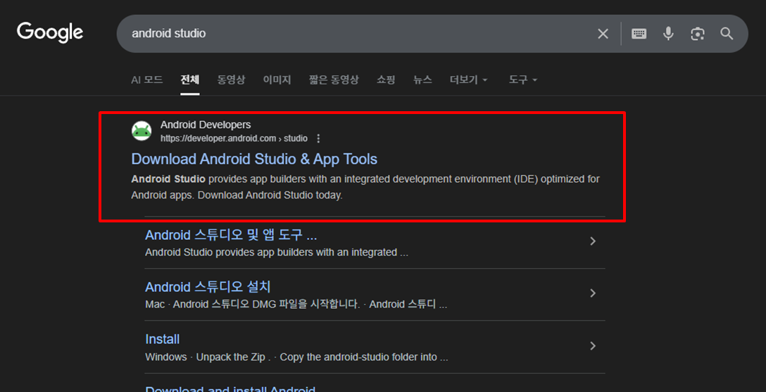 마찬가지로 구글에서 android studio 검색 → 다운로드